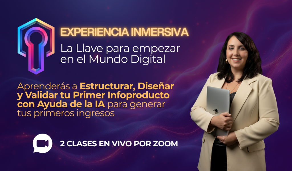 Aprendé paso a paso cómo transformar tu conocimiento en un primer infoproducto rentable con ayuda de la IA — sin complicarte, sin miles de seguidores y sin experiencia previa.